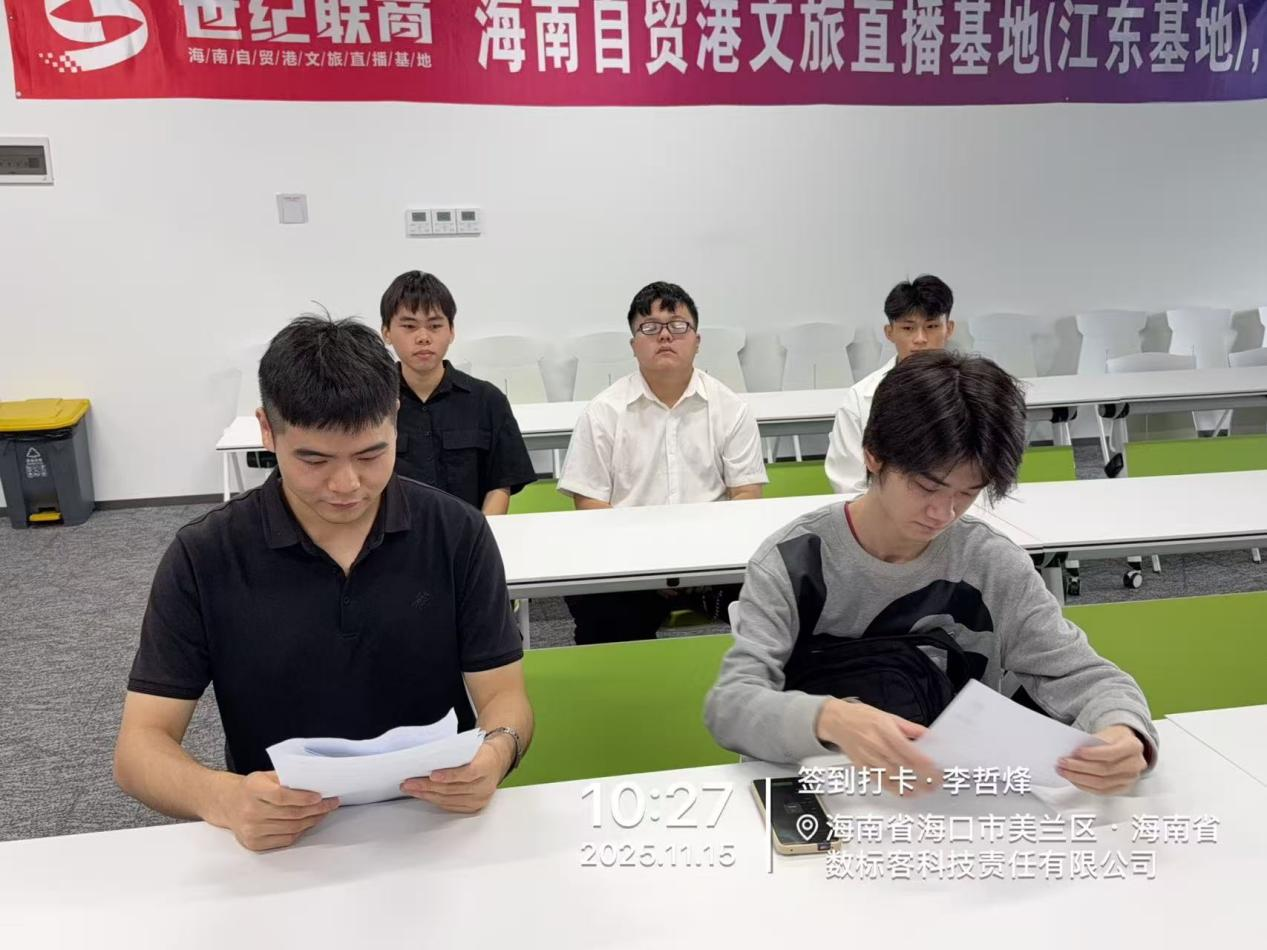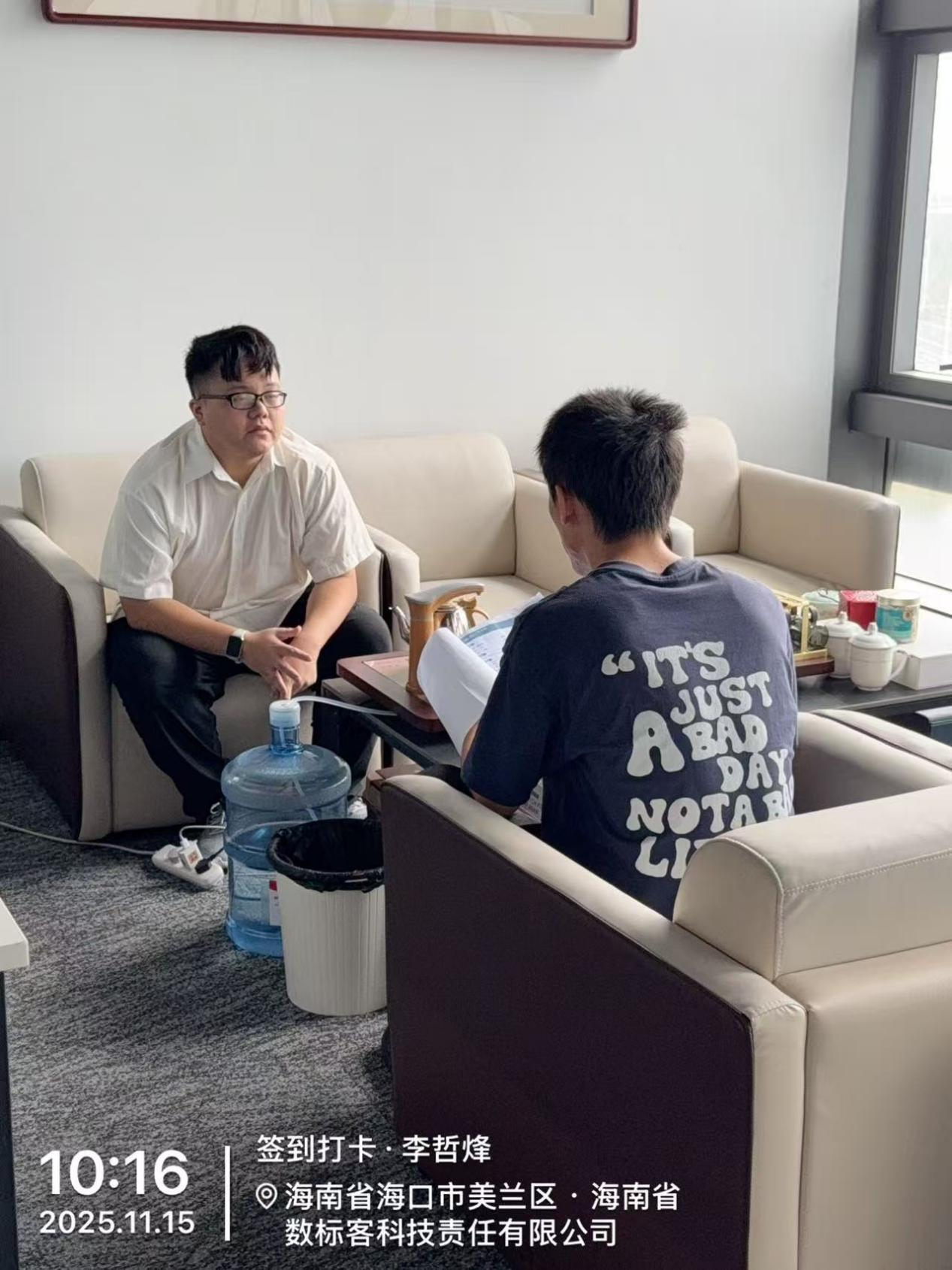 2025年11月15日,工业与信息学院智能信息技术专业群前往海南数标客科技有限责任公司(简称“数标客”)开展岗位化教学调研,并带领24级网络(3+2)专业部分学生到该公司进行岗位面试。