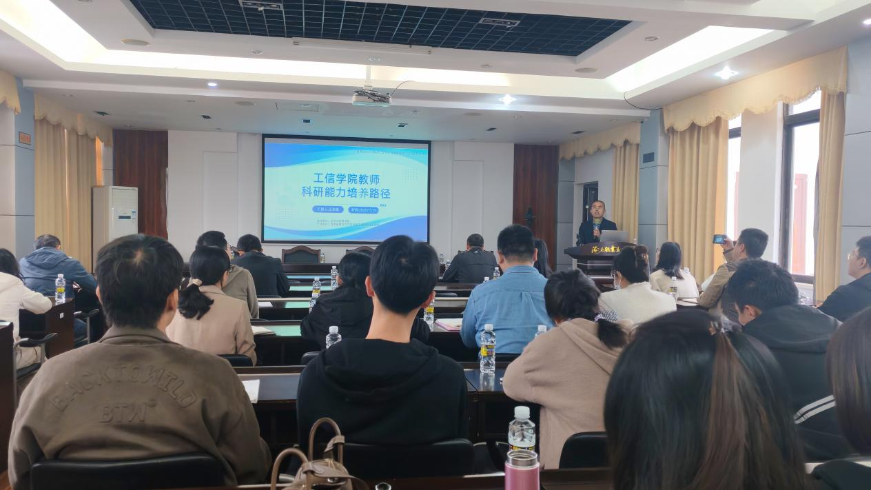 王圣波副教授作“新教师科研能力培养路径”专题报告(工信学院供图)