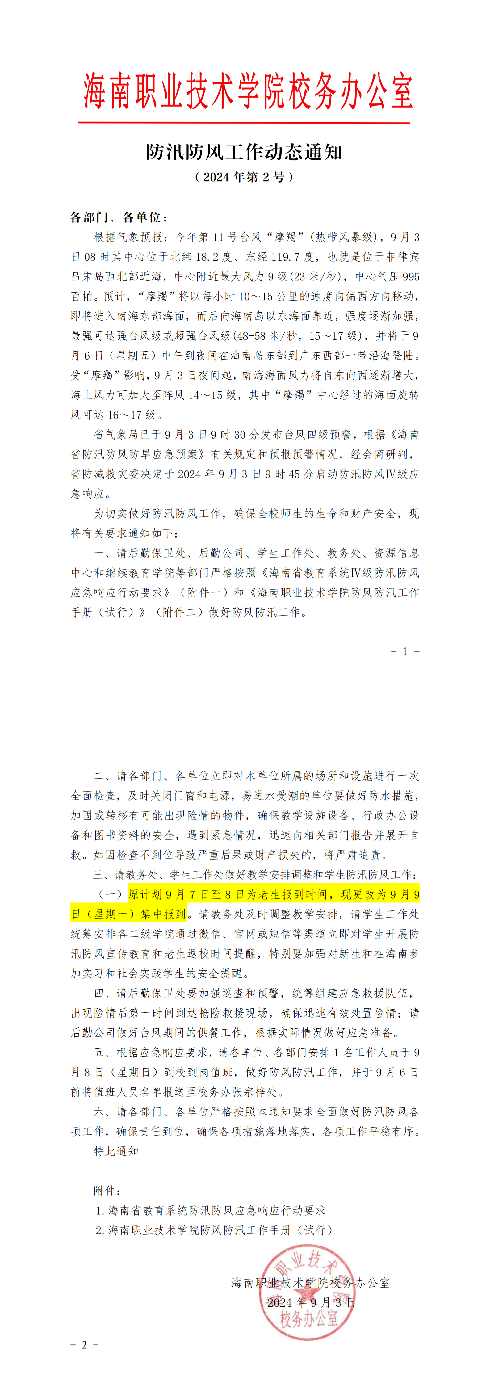 转发海南职业技术学院校务办公室防汛防风工作动态通知(2024年第2号)