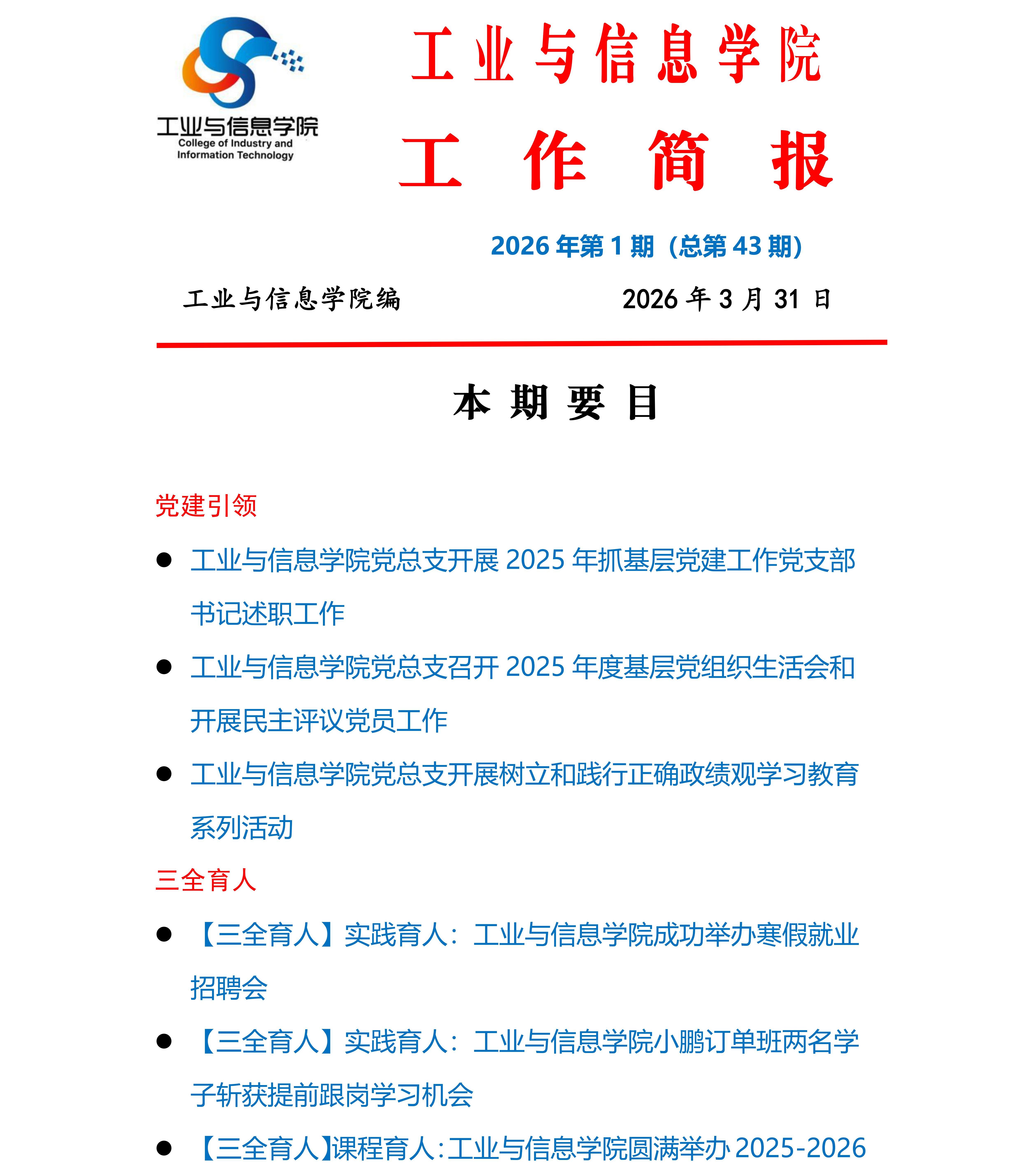 工业与信息学院工作简报(第四十三期)